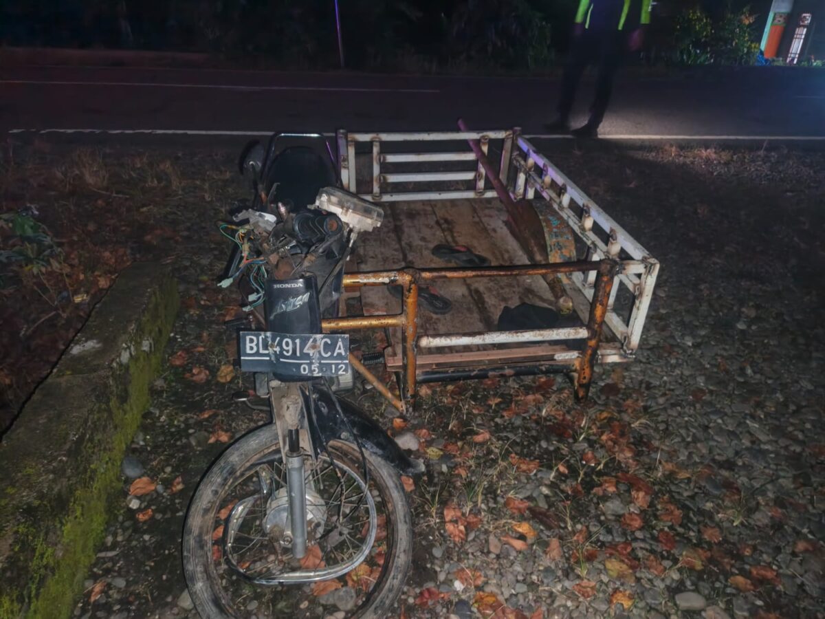 Lebih lanjut, sebut Tasrizalsyah, becak barang tersebut saat itu diduga tanpa menggunakan lampu penerangan dan berusaha hendak mendahului kendaraan lain di depannya, namun posisi becak melebar ke sisi kanan jalan.