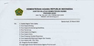 Kanwil Kemenag Aceh Resmi Liburkan Kegiatan Belajar di Madrasah dan Pondok...