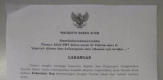 Wali Kota Banda Aceh Keluarkan Surat Larangan Merayakan Valentine Day