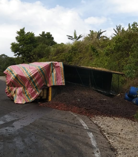 Tidak ada korban jiwa dalam peristiwa itu, namun muatan truk tumpah di badan jalan.