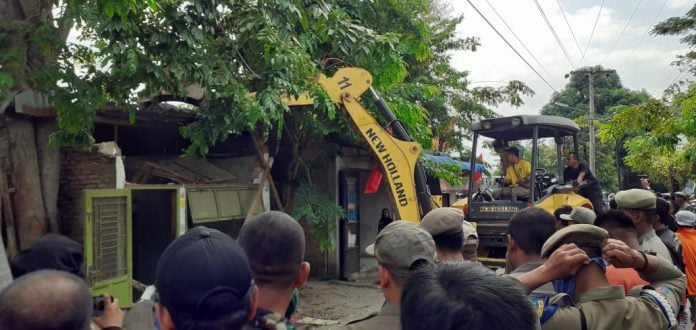 Analisaaceh.com, MEDAN | Satuan Polisi Pamong Praja Kota Medan kembali menertibkan bangunan liar di seputaran bantaran Sungai Deli Jl. Speksi Kelurahan Rengas Pulau Kecamatan Medan Marelan, Sumatera Utara, Kamis (28/11/2019).