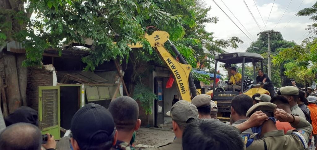 Sebanyak 57 unit bangunan liar itu dibongkar menggunakan Alat berat yang sebelumnya telah disediakan pihak Satpol PP Kota Medan.