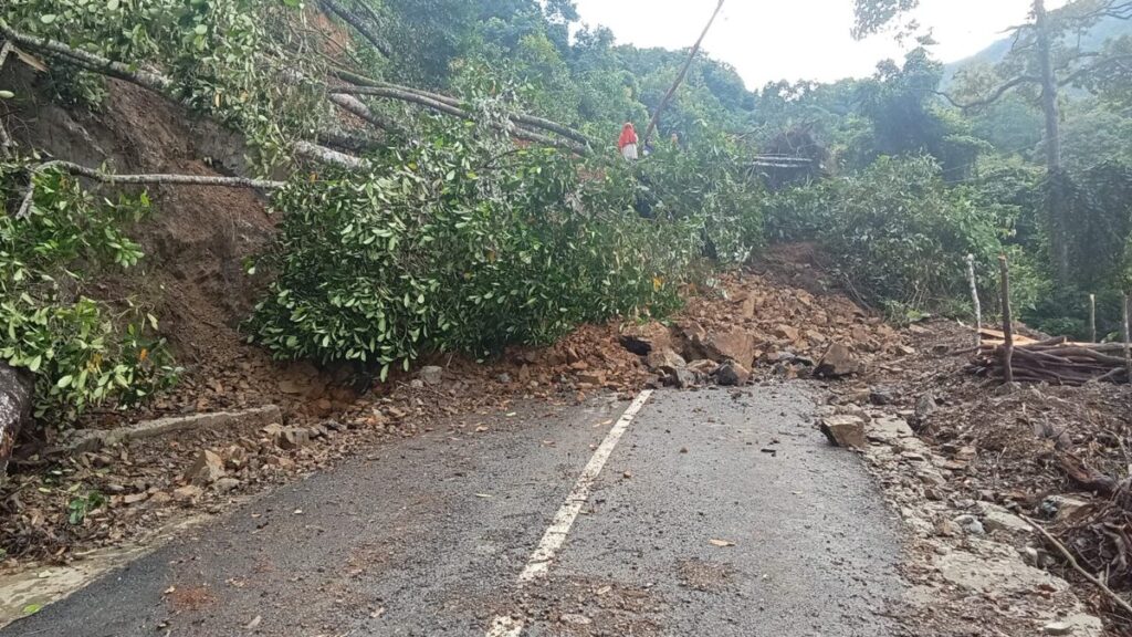 Tanah longsor dan pohon tumbang menutupi jalan lintas Gampong Panton Luas - Tapaktuan, Selasa 7 Mei 2024
