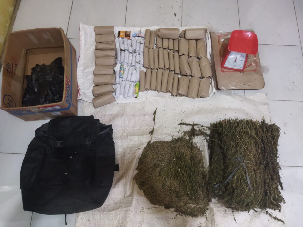 Saat dilakukan penggeledahan, petugas menemukan sejumlah barang bukti berupa 21 bungkus (amp) besar ganja, 20 bungkus sedang ganja dan 3 ikat besar ganja yang dimasukkan kedalam tas ransel hitam dengan berat keseluruhan 4500 gram.