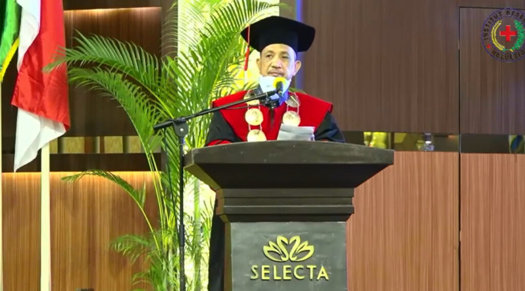 Rektor Institut Kesehatan Helvitia, Prof. Dr. H. Ismail Efendy, M.Si saat pidato wisuda pada Kamis (16/12/2021).