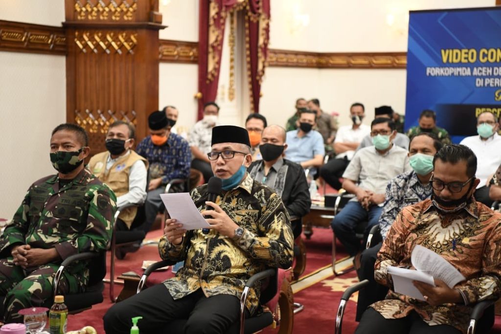 Hal tersebut dibahas dalam Forum koordinasi Pimpinan Daerah (Forkopimda) Aceh dan Forkopimda Kabupaten/Kota di wilayah perbatasan Aceh-Sumatera Utara. Rapat Forkopimda melalui video conference tersebut digelar di Meuligoe Gubernur Aceh, Sabtu, (27/6/2020).