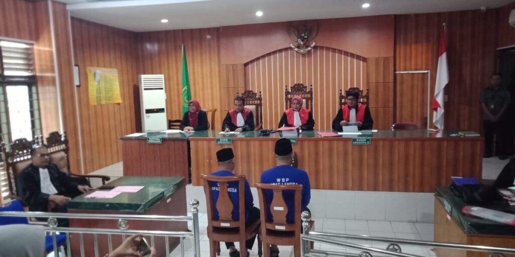 Sidang perdana kasus akun Facebook Usman Udin di Pengadilan Negeri Langsa. Foto: Chairul/Analisaaceh.com.