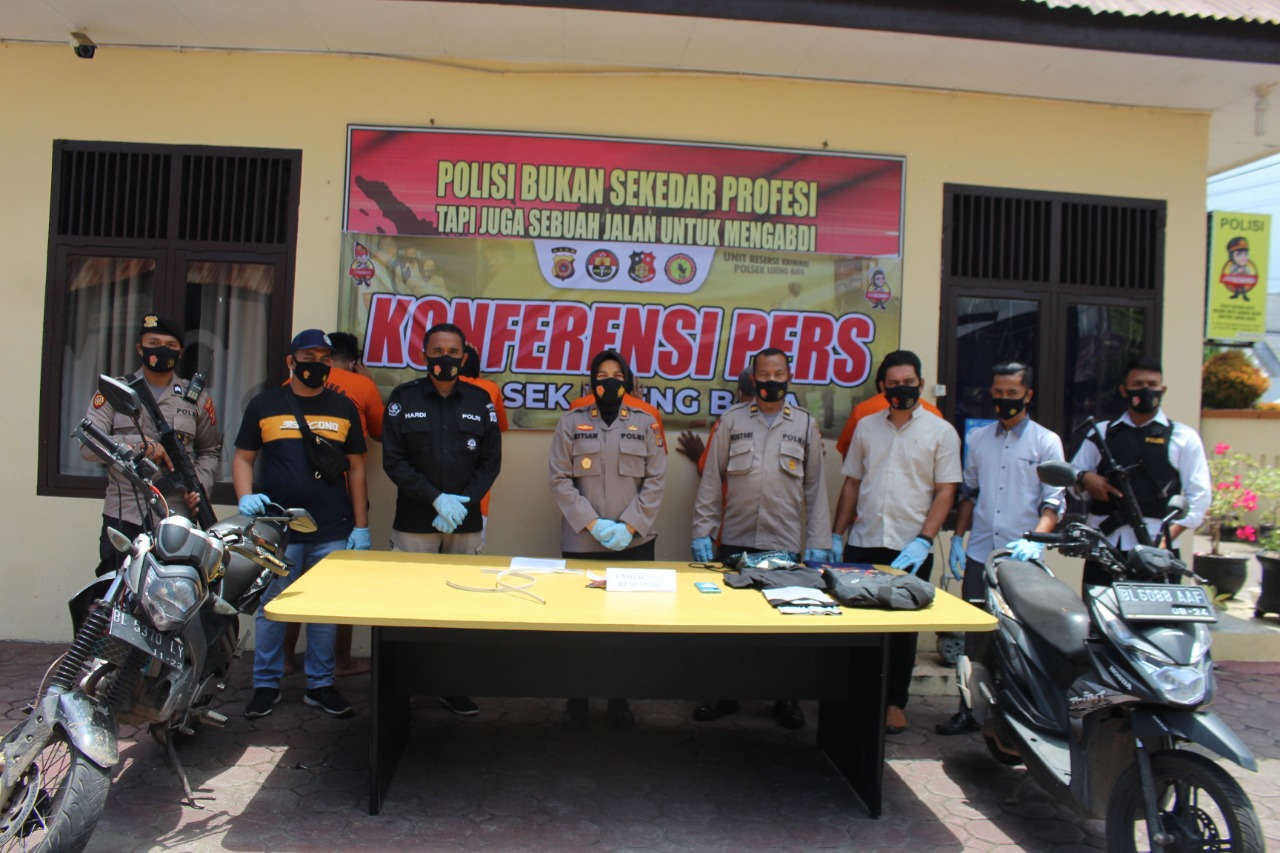 Adapun barang bukti yang berhasil diamankan oleh pihak petugas diantaranya dua unit sepeda motor sebagai alat bantu, satu unit Handphone dari hasil kejahatan, satu helai jacket warna hitam yang digunakan oleh pelaku saat melakukan aksinya.