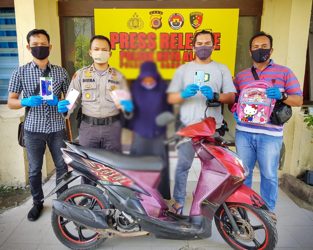 Dizha menjelaskan, kejadian tersebut setelah dilakukan penyelidikan dengan bantuan alat perekam CCTV berhasil mengidentifikasi pelaku merupakan seorang wanita menggunakan hijab berwarna biru dan melarikan diri menggunakan sepeda motor warna merah.
