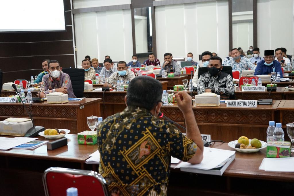 Analisaaceh.com, Banda Aceh | Badan Anggaran DPR Aceh menggelar rapat dengan Tim Anggaran Pemerintah Aceh (TAPA) dan Dinas Pekerjaan Umum dan Perumahan Rakyat (PUPR) dalam rangka penyusunan Rancangan Qanun Pertanggungjawaban Pelaksanaan APBA 2020, Kamis (8/7/2021).
