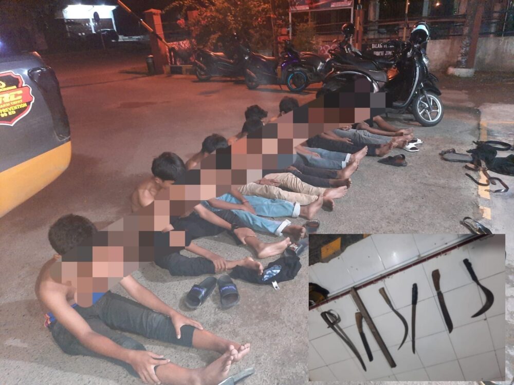“Menerima laporan tersebut, anggota opsnal Sat Inte Intelkam langsung melakukan penyelidikan dan berhasil menangkap para pelaku yang sedang berkumpul di belakang kantor PLN Lancang Garam,” kata Salman.