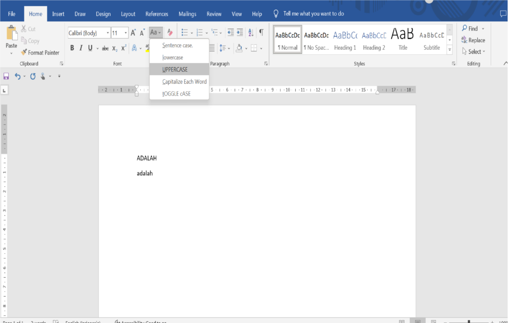 Uppercase pada Microsoft Word adalah fungsi atau fitur untuk mengubah semua huruf pada teks menjadi huruf kapital atau besar.