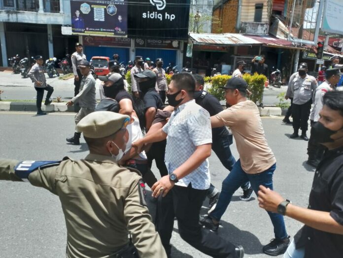 Bahkan, kata Pandji, massa menabrak petugas pengamanan dengan menggunakan mobil komando orasi dan becak, serta memaksakan diri untuk menerobos masuk dan menduduki kantor DPRK Aceh Barat.