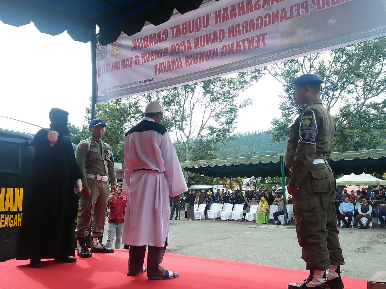 Analisaaceh.com, Takengon | Ada yang unik saat eksekusi hukuman cambuk bagi 6 (enam) terpidana hukum jinayat (judi) di Kabupaten Aceh Tengah.