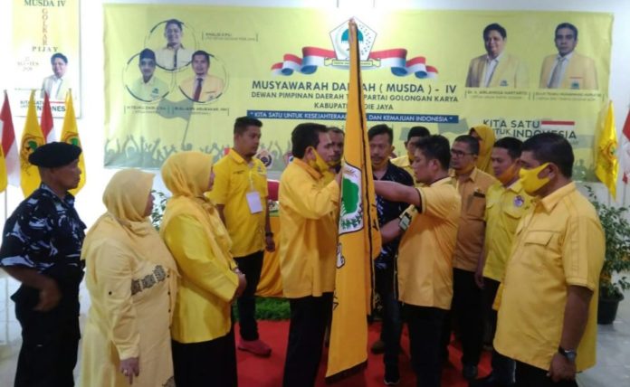 Analisaaceh.com, Meureudu | Khalid, S.Pd.I terpilihnya secara aklamasi sebagai Ketua DPD Tingkat II Partai Golkar Pidie Jaya pada Musyawarah Daerah (Musda) IV yang berlangsung di Aula Wisma Ananda, Meureudu, Selasa (25/8/2020).