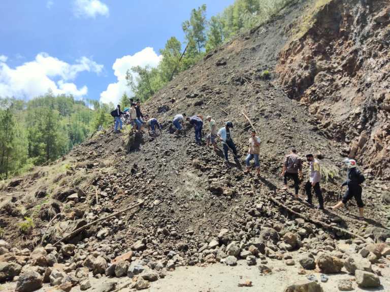 “Kita mengimbau masyarakat yang tetap harus melintas dan membawa kendaraan, agar berhati-hati. Karena material longsor masih terlihat turun ke jalan” himbau Kapolres.