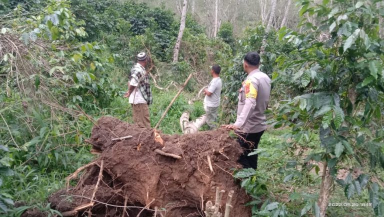 Pohon Petai tumbang menimpa seorang warga di warga Kampung Perumpakan Benjadi, Kecamatan Mesidah Kabupaten Bener Meriah, Minggu (29/5/2022).
