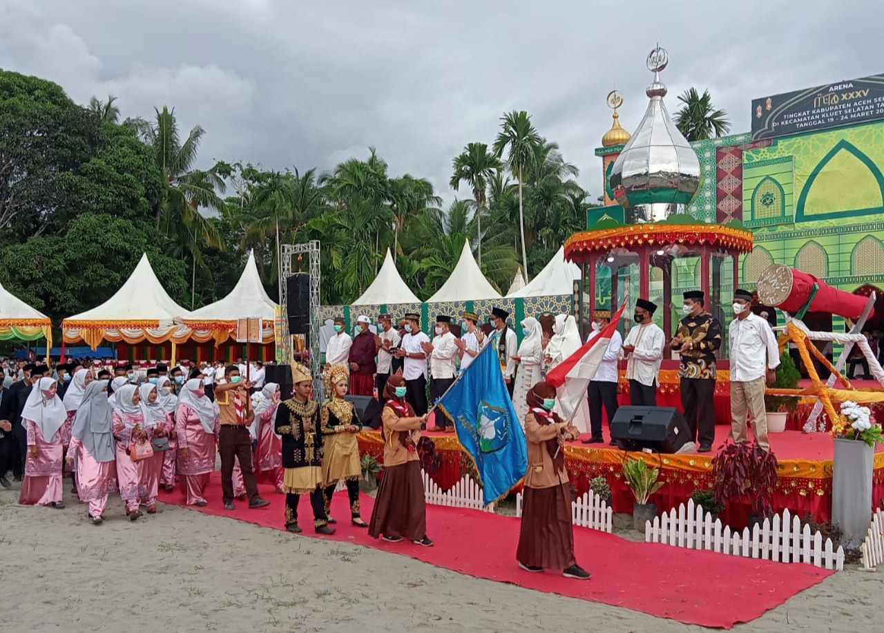 Analisaaceh.com, Tapaktuan | Bupati Tgk. Amran resmi membuka Musabaqah Tilawatil Qur’an (MTQ) ke XXXV tingkat Kabupaten Aceh Selatan Tahun 2021 di Lapangan Gelumbuk, Kecamatan Kluet Selatan kabupaten setempat, Jum’at (19/3/2021).