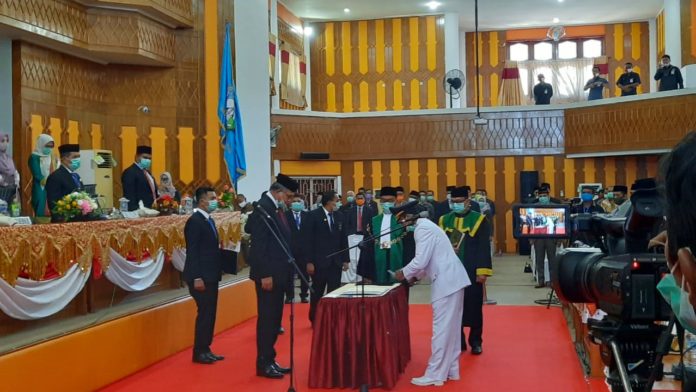 Analisaaceh.com, Tapaktuan | Pelaksana tugas (Plt) Gubernur Aceh Ir Nova Iriansyah, MT melantik Tgk. Amran sebagai Bupati Aceh Selatan untuk sisa masa jabatan tahun 2018-2023, dalam Rapat Paripurna Dewan Permusyawaran Rakyat Kabupaten (DPRK) di Gedung DPRK setempat, Kamis, (25/06/2020).
