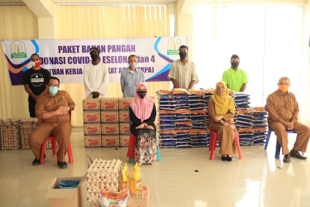 Bantuan yang bersumber dari urunan pejabat eselon 3 dan 4 Satuan Kerja Perangkat Aceh (SKPA) itu diantarkan langsung Wakil Ketua Tim Gugus Tugas Percepatan Penanganan Covid-19 Aceh, Dyah Erti Idawati, dan Asisten II Serda Aceh, T. Ahmad Dadek.