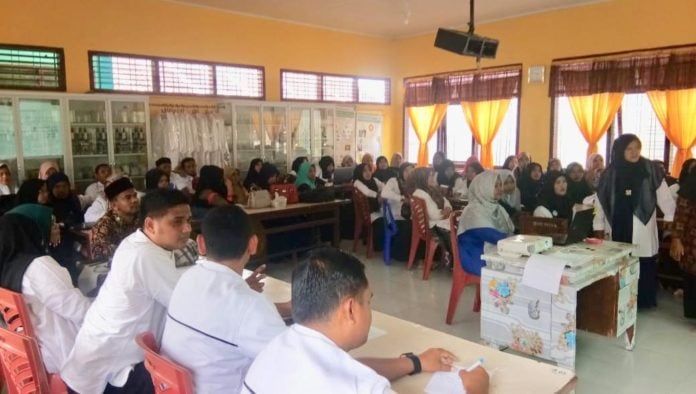 Analisaaceh.com, Pidie Jaya | Dinas Pendidikan Kabupaten Pidie Jaya lakukan evaluasi kinerja 63 Guru Pembimbing Khusus (GPK) dari 30 satuan Pendidikan Inklusif jenjang PAUD, SD, dan SMP di Aula SMPN 1 Meureudu, Pidie Jaya (05/02/2020).