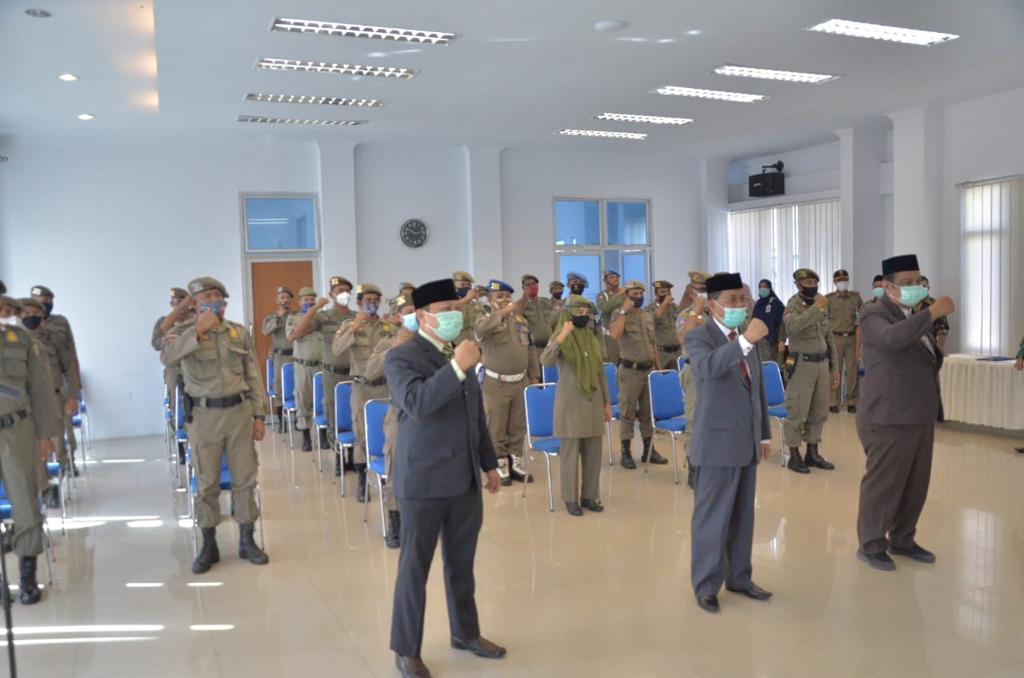 Prosesi pelantikan digelar di Aula BPKSDM Kompleks Balai Kota Banda Aceh, Kamis, 14 Januari 2021. Turut hadir Kepala Badan Kepegawaian dan Pengembangan SDM (BKPSDM) Arie Maula Kafka dan Plt Kepala Satpol PP dan WH Heru Triwijanarko.