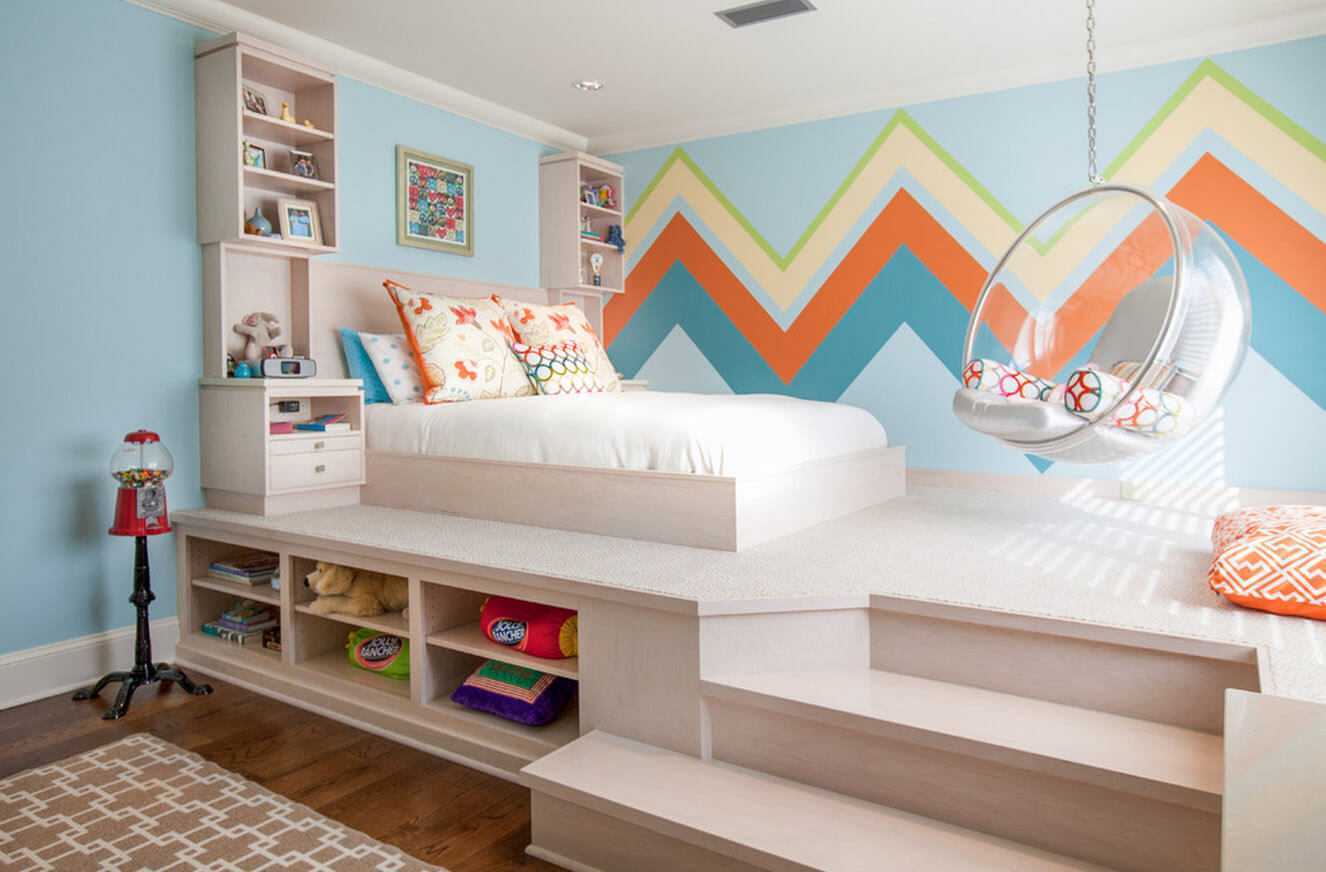 Tata buku-buku koleksi dengan rak yang dibentuk unik. Warna kover dari buku juga dapat menambah nilai seni dari kamar tidur.
