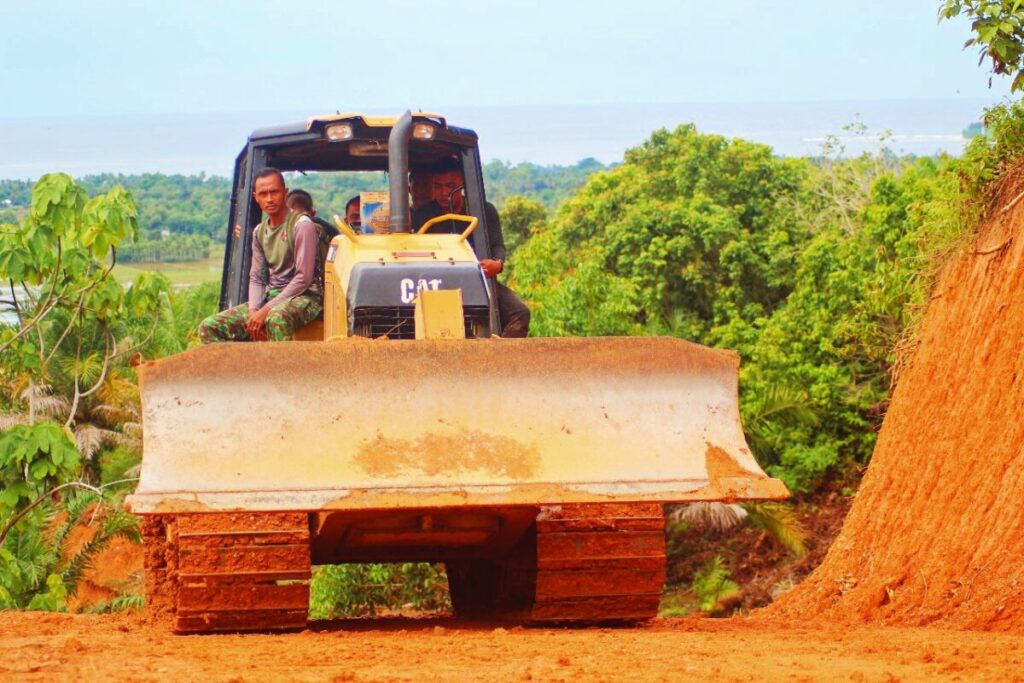 Pembangunan jalan program TNI Manunggal Membangun Desa (TMMD) ke 119 Kodim 0110 Aceh Barat Daya (Abdya). Foto: Ist