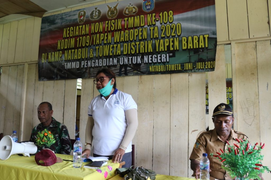 Analisaaceh.com, Yapen — Kegiatan TNI Manunggal Membangun Desa (TMMD) Ke 108 Kodim 1709/Yawa TA. 2020 di Kampung Natabui dan Toweta, Distrik Yapen Barat, Kab. Kep. Yapen, dilaksanakan penyuluhan kesehatan kepada warga di lokasi TMMD bertempat di ruang kelas SD YPK Natabui, Selasa (14/07/2020).