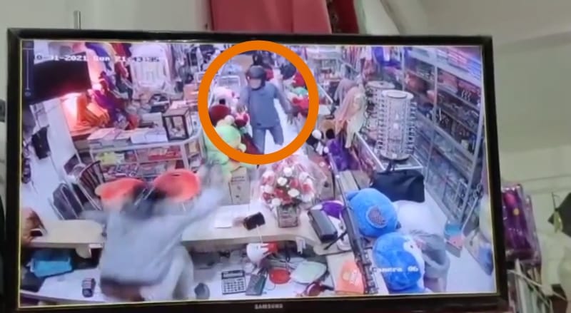 Peristiwa yang terjadi pada Minggu (31/10/ 2021) sekira pukul 21.40 WIB tersebut, sempat terekam oleh CCTV toko.