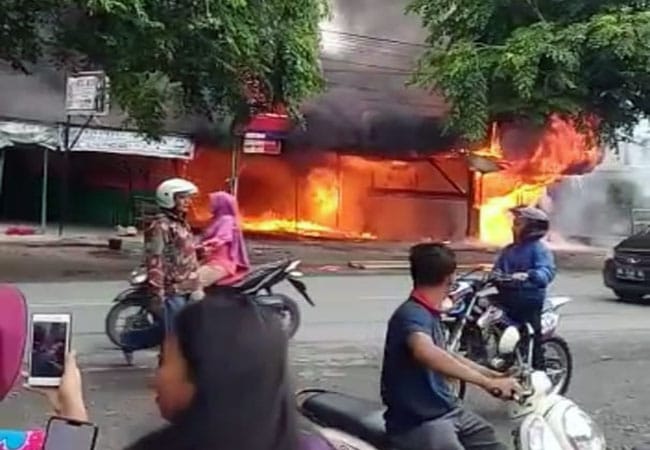 ANALISAACEH.com | Medan – Toko penjual sparepart sepeda motor Jalan Marelan Raya, Pasar II, Lingkungan 19, Kelurahan Rengas Pulau, Kecamatan Medan Marelan, Sumatera Utara terbakar, Jumat (26/7/2019).