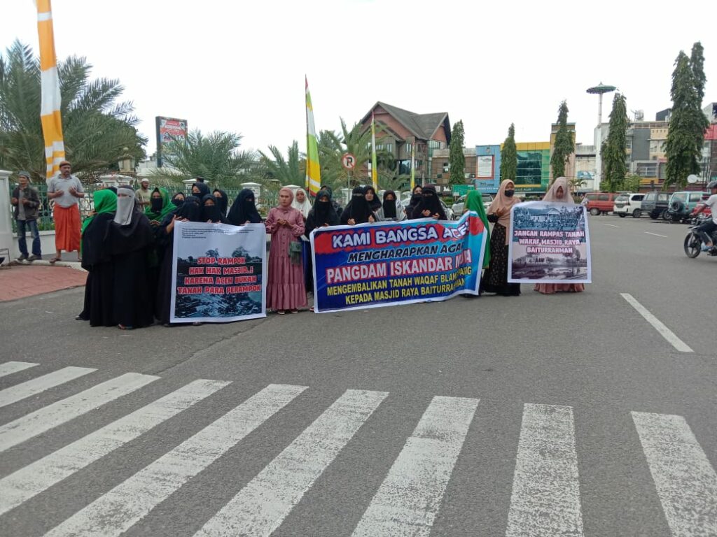 Massa juga menuntut tanah wakaf Blang Padang agar dikembalikan ke Masjid Raya Baiturrahman.