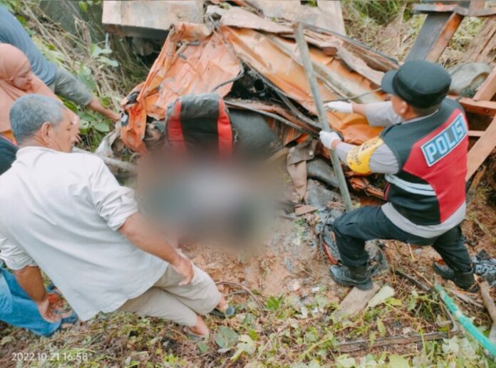 “Sesampai di jalan turunan dan tikungan ke kanan arah gampong Lueng Baro, diduga hilang kendali karena rem blong sehingga jatuh ke dalam jurang yang berada di sebelah kiri jalan yang kedalaman kurang lebih 10 meter dari badan jalan,” kata Iptu Jufni dalam keterangannya yang diterima Analisaaceh.com.