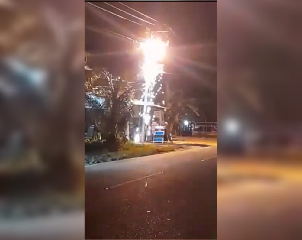 Dalam peristiwa itu terlihat api membesar pada salah satu tiang listrik PLN yang juga berdekatan dengan rumah warga.