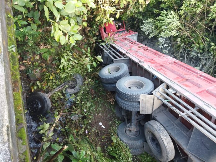 Analisaaceh.com, Redelong | Satu unit truk bermuatan semen jenis Oren Mitsubishi jatuh ke dalam jurang sedalam 12 meter di jembatan Alur Cincin, Kecamatan Pintu Rime Gayo, Bener Meriah pada Kamis (26/8/2021).