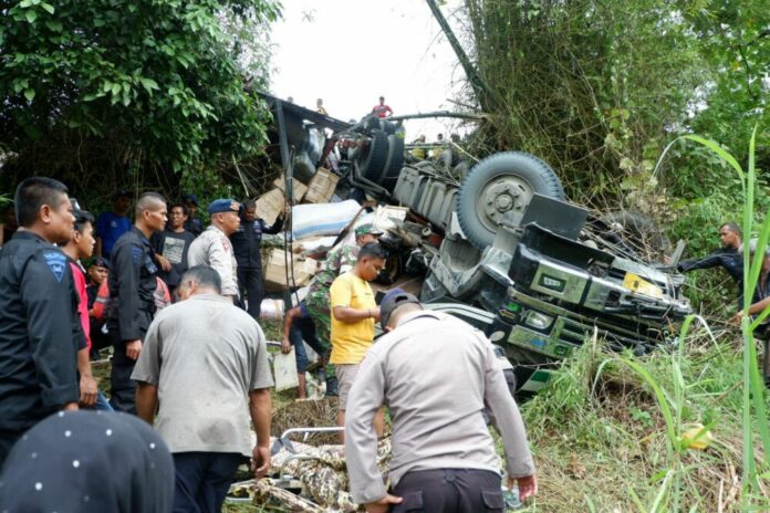 Analisaaceh.com, Aceh Besar | Satu unit truk Fuso jatuh ke jurang di tikungan Seunapet, Kecamatan Lembah Seulawah, Kabupaten Aceh Besar pada Jum’at (29/7/2022).