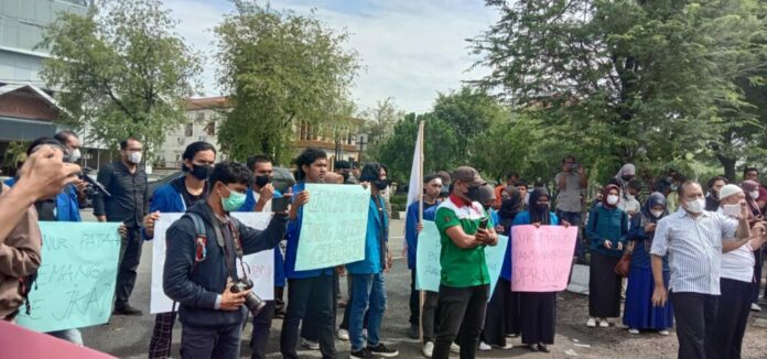 Analisaaceh.com, Banda Aceh | Sejumlah masyarakat yang bergabung dalam Gerakan Masyarakat Aceh Menggugat (GERAM) menggelar aksi unjuk rasa di halaman kantor DPRA pada Senin (21/3/2022).