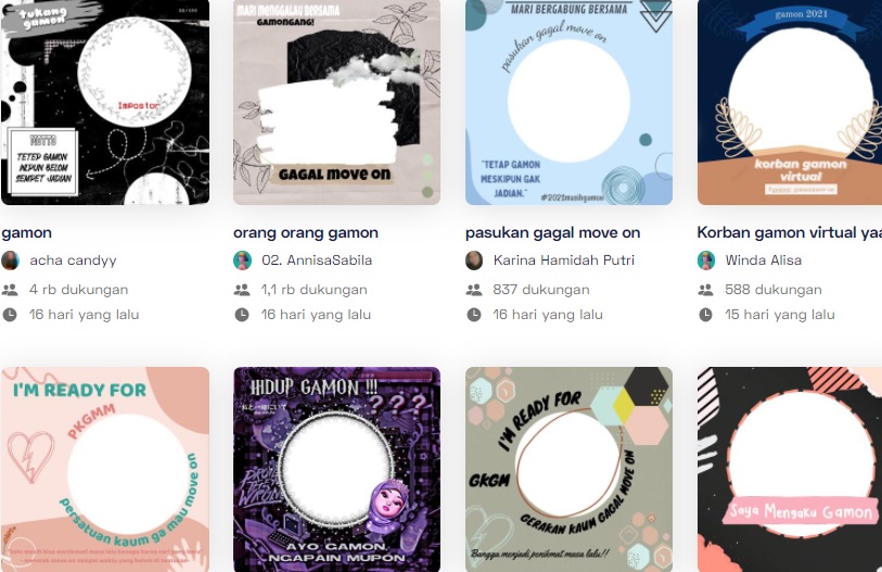 Terdapat banyak Twibbon Gamon dan Gagal Move On Terbaru yang bisa anda dapatkan secara gratis di situs twibbonize.com