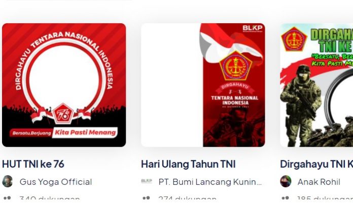 Untuk memudahkan, analisaaceh.com telah menyediakan rekomendasi link template Twibbon populer yang bisa digunakan untuk merayakan Hari HUT TNI yank ke 76.