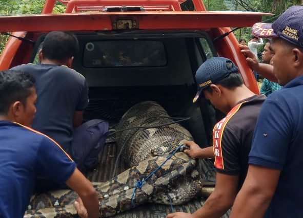 Farhan menyebutkan, sekira pukul 13.21 WIB ular tersebut berhasil di tangkap dan di evakuasi ke mobil Rescue BPBD