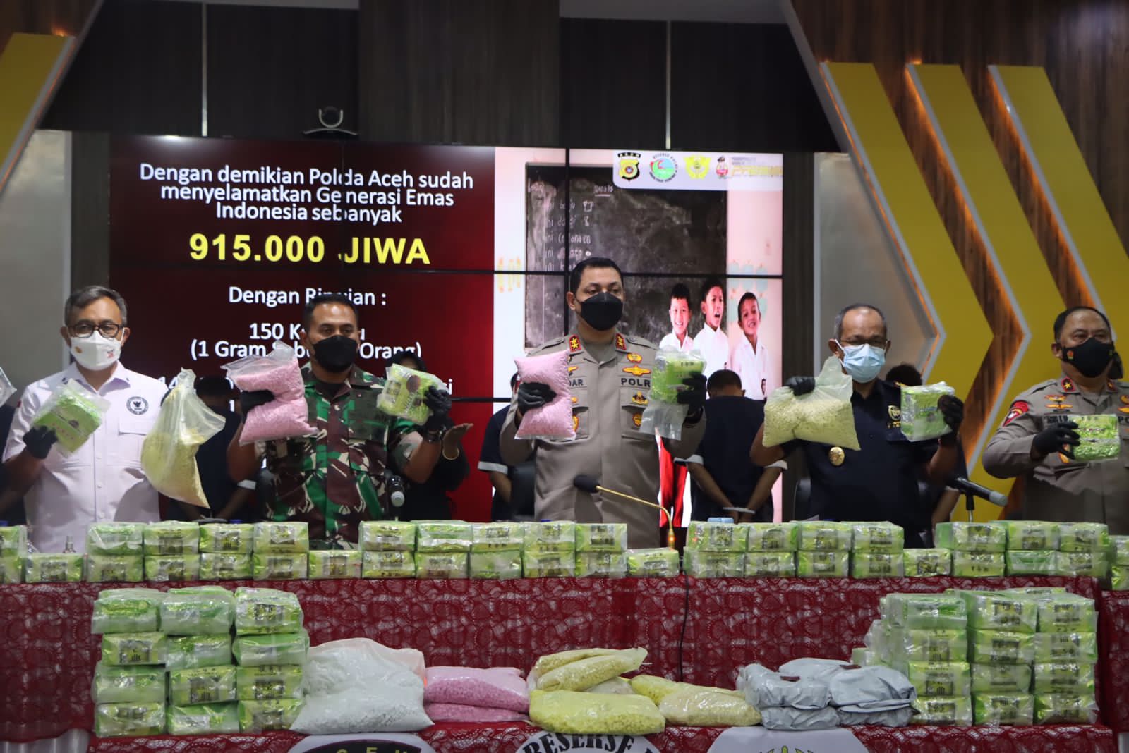 “Dengan digagalkannya penyelundupan narkotika ini, secara tidak langsung Polda Aceh telah menyelamatakan generasi emas Indonesia sebanyak 915.000 jiwa,” ungkapnya.