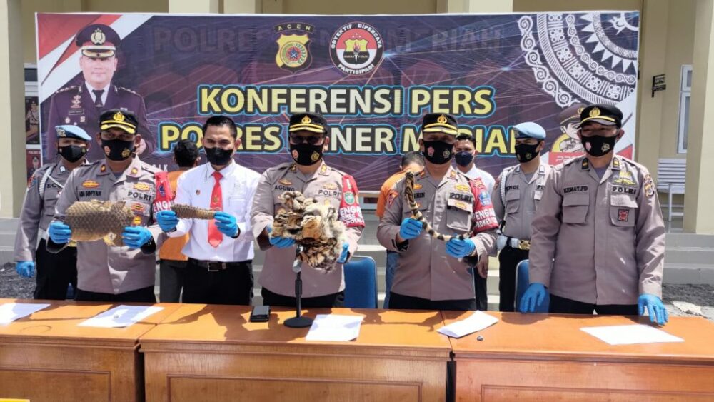 “Saat tim gabungan Sat Reskrim dan BKSDA Aceh yang dipimpin Kasat Reskrim AKP Dr. Bustani sampai di lokasi, petugas menemukan 1,5 KG sisik Trenggiling. Di lokasi tersebut diamankan satu orang diduga pelaku berinisial SN alias OH warga Desa Reronga,” kata Kapolres, Senin (25/4/2022).