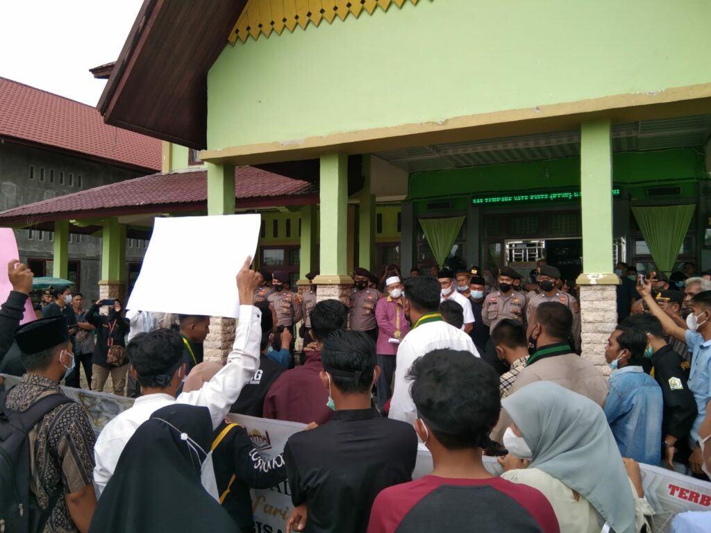 Dalam aksi tersebut, massa menyampaikan sejumlah tuntutan kepada Kankemenag Aceh Tamiang, diantaranya: