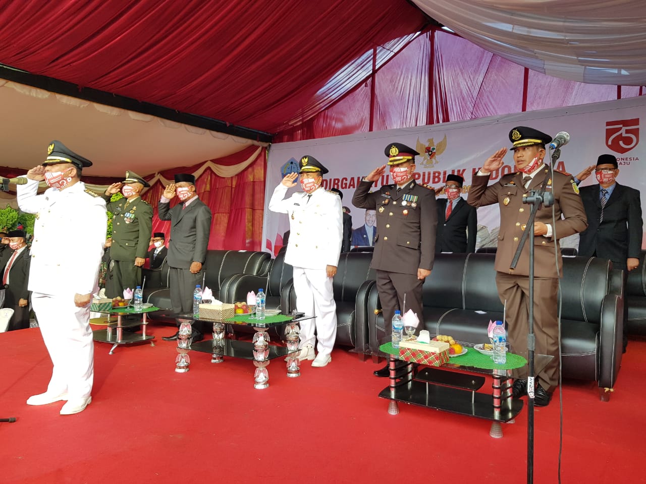 Analisaaceh.com, Meureudu | Perayaaan hari ulang tahun kemerdekaan RI ke 75 di Kabupaten Pidie Jaya digelar dihalaman Kantor Bupati Pidie Jaya di Komplek Perkantoran Cot Trieng, Senin (17/08/20)