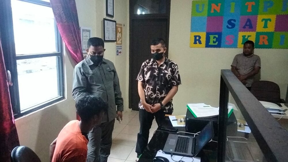 Tersangka berinisial RU (25) ini menyerahkan diri ke Mapolsek Darul Makmur didampingi perangkat desa setempat.