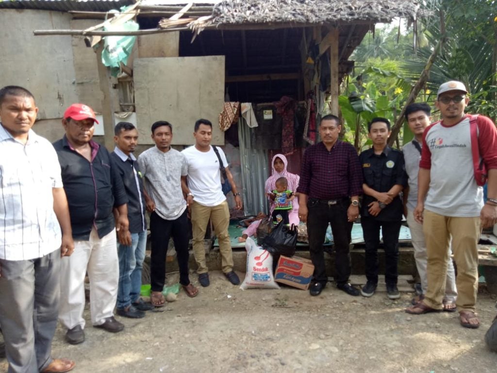 Komunitas 'Lhoksuemawe Bisa' saat menyalurkan bantuan untuk keluarga dhuafa, M. Jafar, warga Blang Poroh, Kec. Muara Dua, Kota Lhokseumawe, Kamis (27/6)