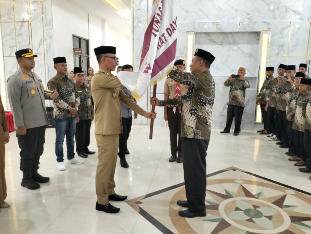Pelepasan para kontingen Kwarcab Pramuka MTR sebanyak 36 orang yang terdiri dari 23 peserta lomba dan 8 pendamping itu berlangsung di kantor bupati setempat, Selasa (11/03/2025).