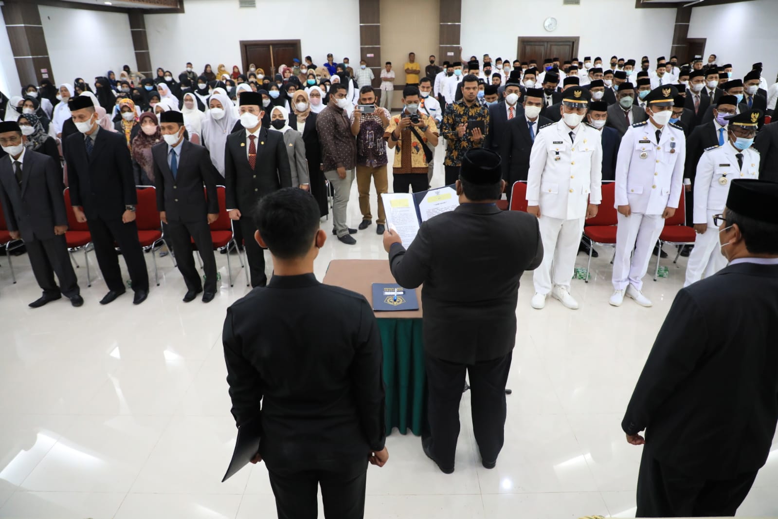 Prosesi pelantikan dan pengambilan sumpah berlangsung di aula Kantor Bupati Aceh Utara di Landing Kecamatan Lhoksukon, Kamis, 6 Januari 2022.