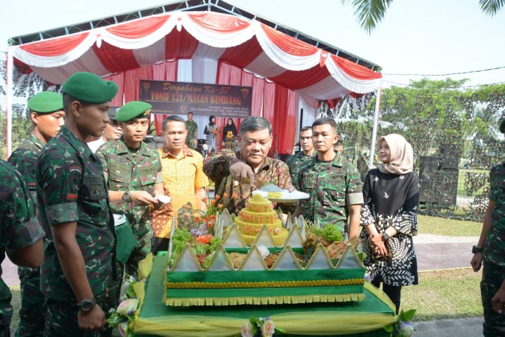 Syukuran yang penuh dengan kekeluargaan ini hadir Wakil bupati Deli Serdang H.M Ali Yusuf Siregar didampingi Danyon 121/MK Letkol Inf Imir Faisal ,Dandim 0204/DS Letkol Kav Syamsul Arifin, Wakapolres DS Kompol Arnis Syafni Yanti,SE , Pimpinan OPD, Camat beserta Muspika serta Tokoh Masyarakat setempat yang ditandai dengan pemotongan nasi tumpeng dan di berikan kepada Prajurit yang berprestasi , Sabtu (29/6) di Yonif 121 Macan Kumbang Kecamatan Galang.