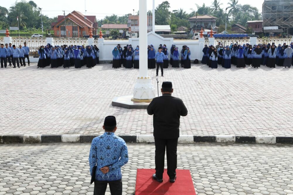 Wakil Bupati Aceh Utara Fauzi Yusuf saat menjadi inspektur upacara memperingati Hari Kebangkitan Nasional ke-114 di halaman Kantor Bupati di Landing Kecamatan Lhoksukon, Jumat (21/5/2022). Foto: Ist